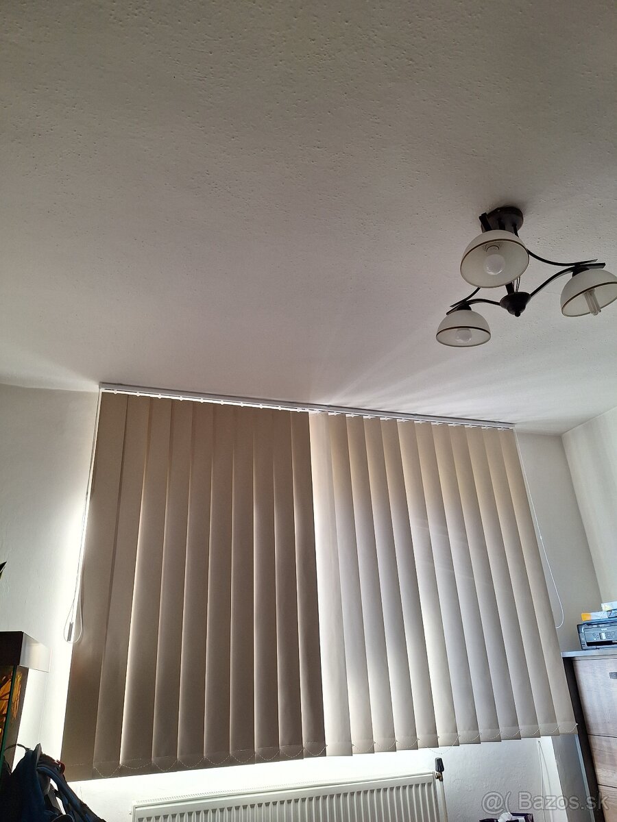 Predám 2x vertikálna žalúzia. Ľavá žalúzia šírka 1130mm, výška od stropu 1750mm, farba biela káva (béžová), sťahovanie zdravá doľava. Práva žalúzia šírka 1400mm, výška od stropu 1750mm, farba biela káva (béžová), sťahovanie zľava doprava.