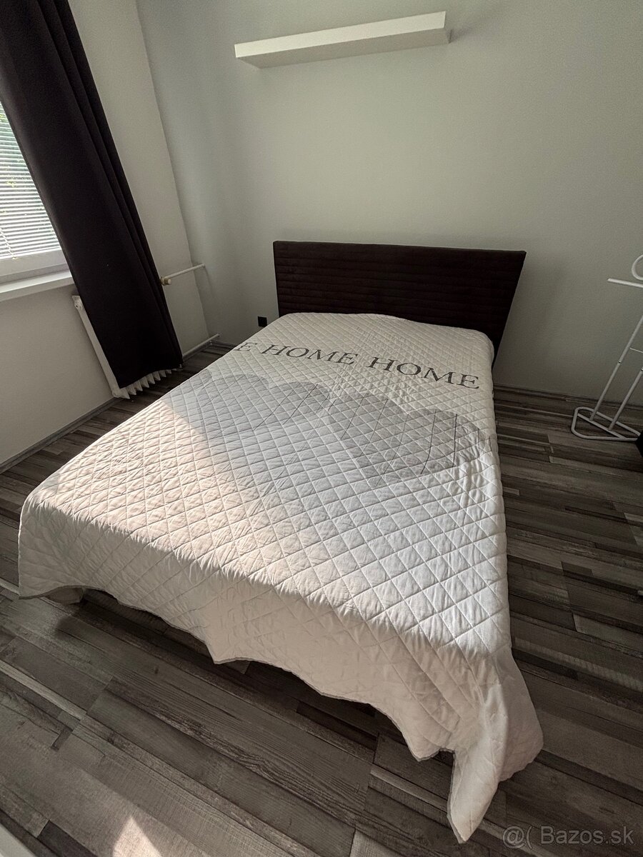Predám manželskú posteľ. Rozmery sú 140x200. Farba je antracitová. Používaná cca 2 roky. Posteľ sa predáva s roštom bez matraca.