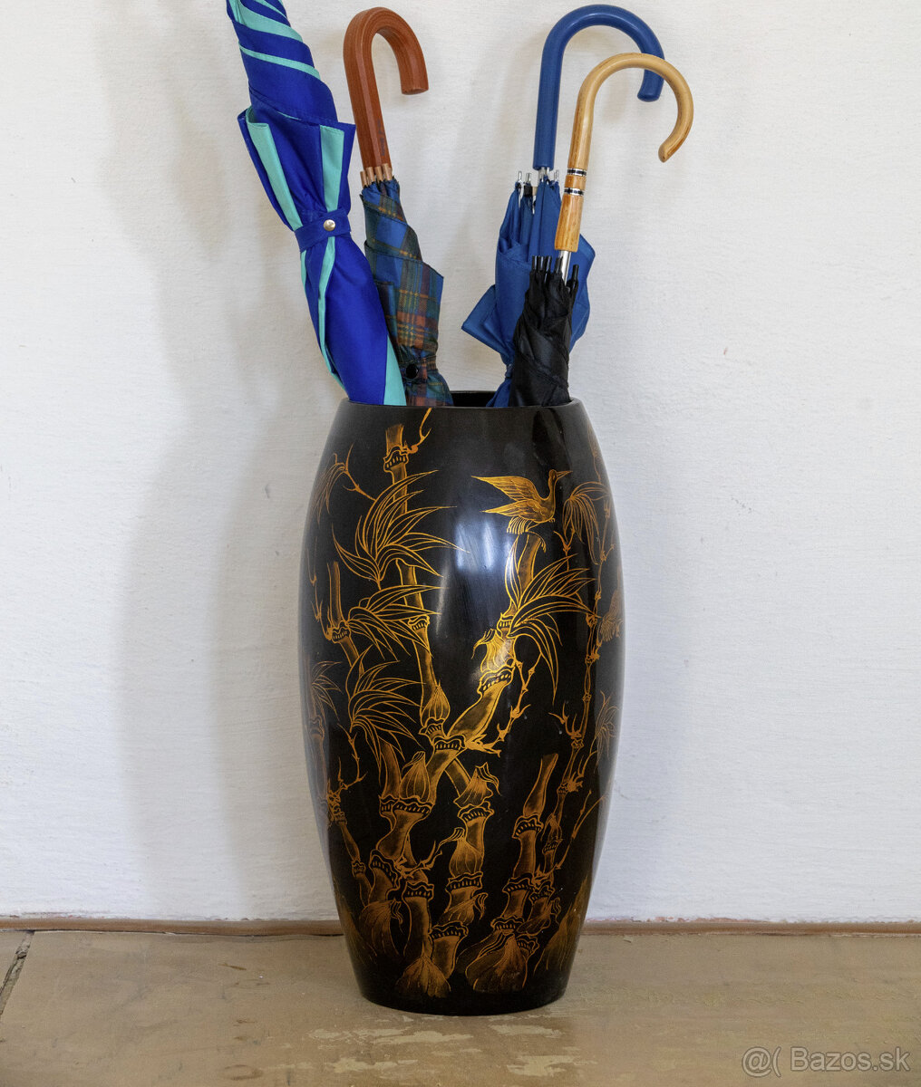 Drevena dekorovana lakovana vaza, vyska 50cm, priemer cca 25cm