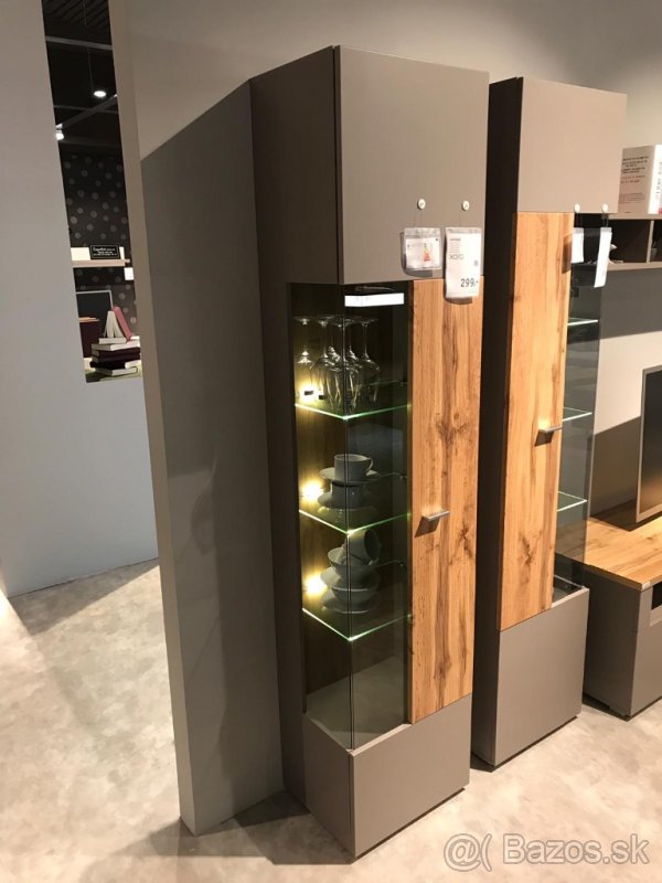 Sklenená predná časť prechádza cez roh, ktorý je zobrazený vďaka integrovanému osvetleniu LED. Rozmery: Šírka/výška/hĺbka: 45/201/36 cm. Osobný odber. Pôvodná cena 299 €, predám za 149€.
