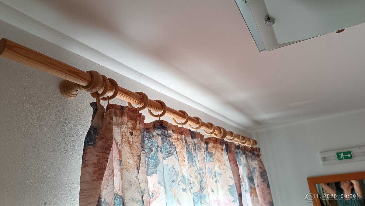 Predám garnizu drevenú s drevenými uchytmi do steny, s drevenými krúžkami a uchymi na záclony + závesy. Tie sú zospodu iba odstrihnute. Rozmery garnize 180cm a priemer 25, závesy 18 krúžkov na uchytenie, šírka jedného 150x dĺžka 175 + 6 CM sú krúžky a uchytenie. Osobný odber Prievidza