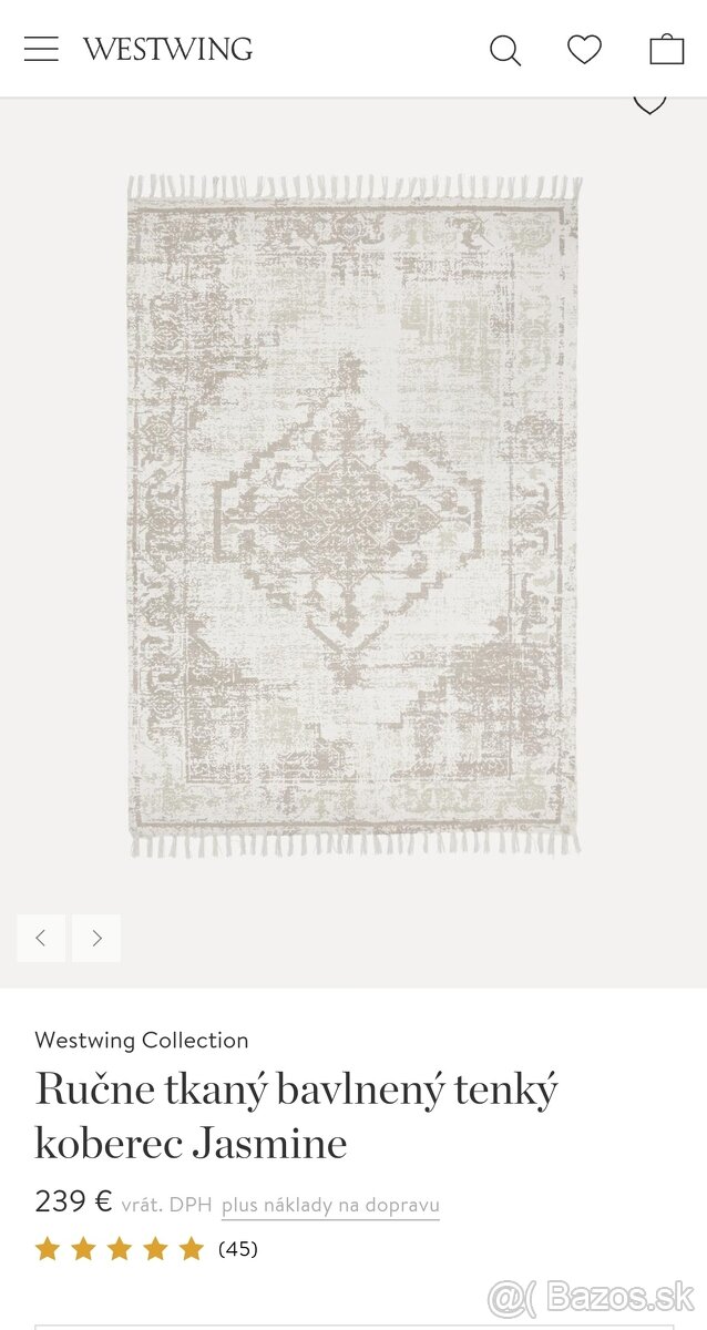 Predam uplne novy, nepouzivany, rucne tkany bavlneny tenky koberec JASMINE, vratit sa uz neda bohuzial, cely cas je zabaleny v skrini, iba bol prirovnany, velkost 200x300cm. PC 290eur, teraz ho dam za 200eur. Iba osobny odber: Bratislava.