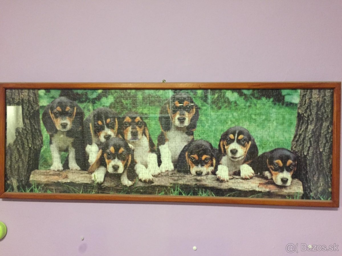 Predám obraz psíkov poskladaný z puzlle, zarámovaný, nepoškodený.