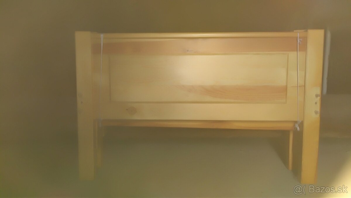 Predám jednolozkovu posteľ borovica 90cm širka,200 cm dĺžka BEZ ROŠTU.Cena je 40€. Posteľ je málo používaná. Momentálne je demontovaná ako vidieť na fotke.