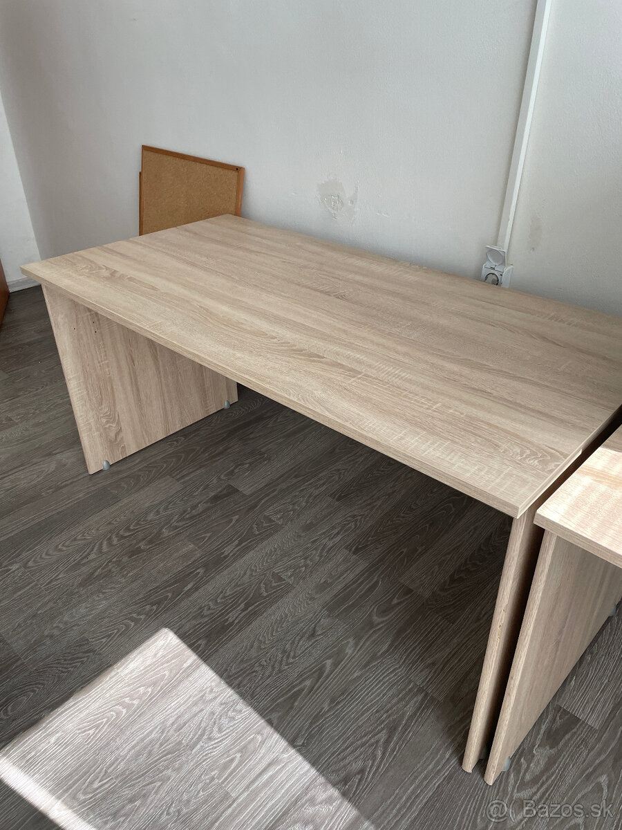 Dobrý deň, predám krásne veľké pracovne stoly. Ideálne do kancelárie. V svetlohnedej farbe. Rozmery pracovnej plochy 150x75cm. Výška stola 74cm. K dispozícii 2 kusy. Cena za jeden 50€.