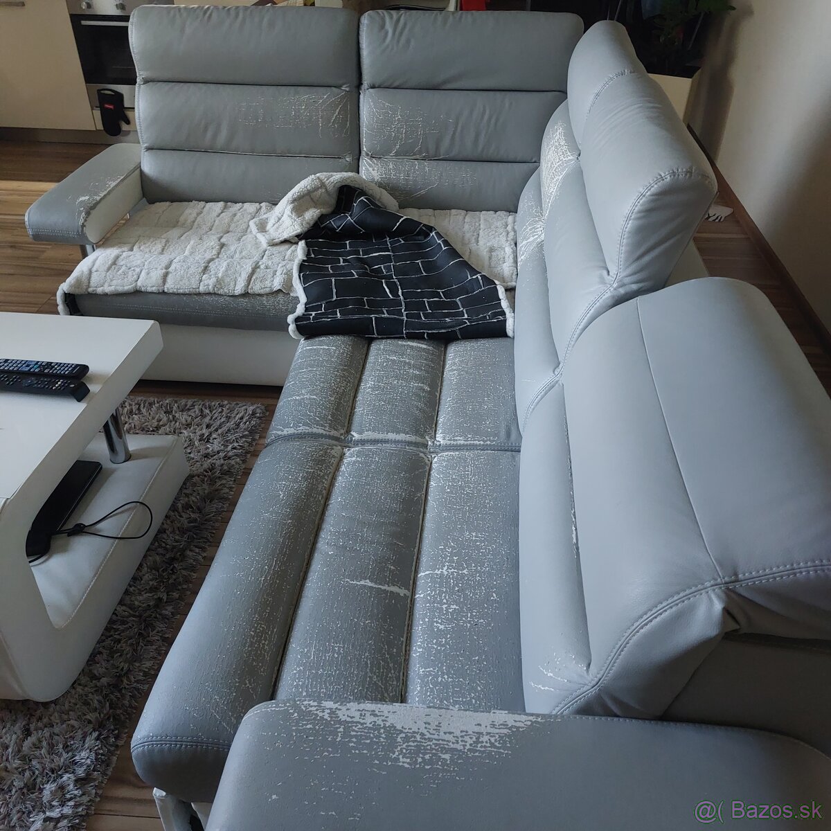 Predám gaučovú súpravu.opierky hlavy sú polohovatelné,dá sa aj rozložiť. Je to koženka,ktorá sa už lúpe.(poškodená)