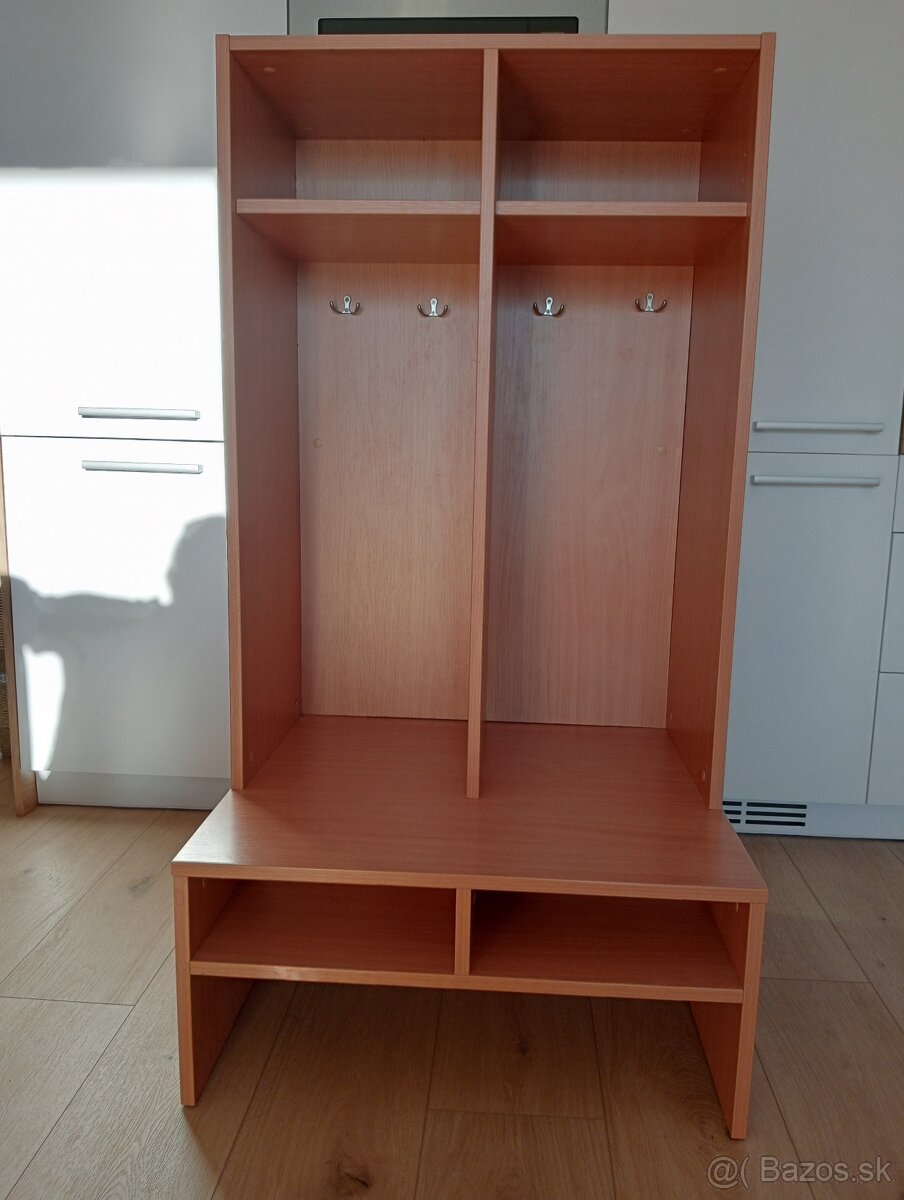 Predám veľmi zachovalu šatníkovu skriňu, 4 vešiaky, 2 boxy na topánky a 2 na čiapky.