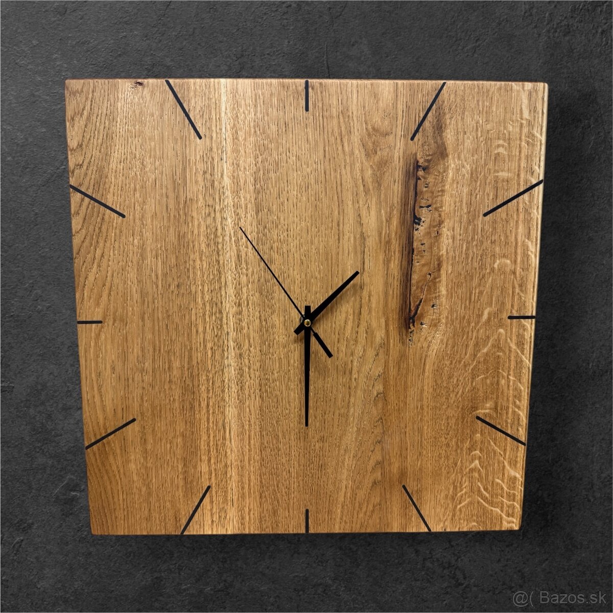 Predám dubové hodiny rozmer 40X40 cm , ciferníky sú zafrézované v dreve .