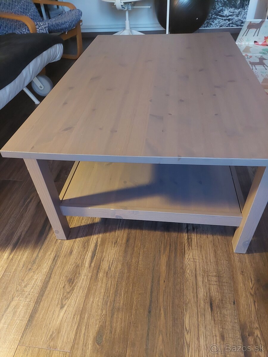 Predám drevený masívny stôl do obývačky zo starej kolekcie Ikea Hemnes. Rozmery 118 x 75 cm. Odrenina na spodnej strane a malá škvrna na doske viď foto.