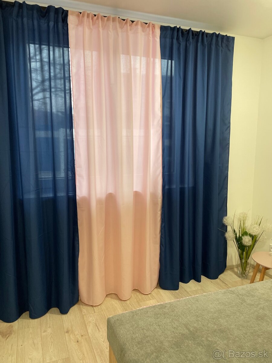 Ešte je na predaj 1ks v ružovej farbe a 2ks v sivej farbe. Záves je hore na riasiacu pásku,na štipčeky. Štipčeky nie sú v cene. Cena 1 závesu - 15€. Všetky 3 závesy sú úplne nové a neboli použité. Predám aj samostatne,nie je potrebný odber všetkých 3 spolu.