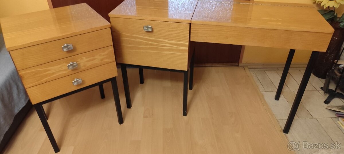 Predám starší kozmetický stolík a nočný stolík. Cena za nočný stolík je 30€, za kozmetický 70€. Snažila som sa pofotiť stav reálne aký je, no najlepšie je vidieť osobne.