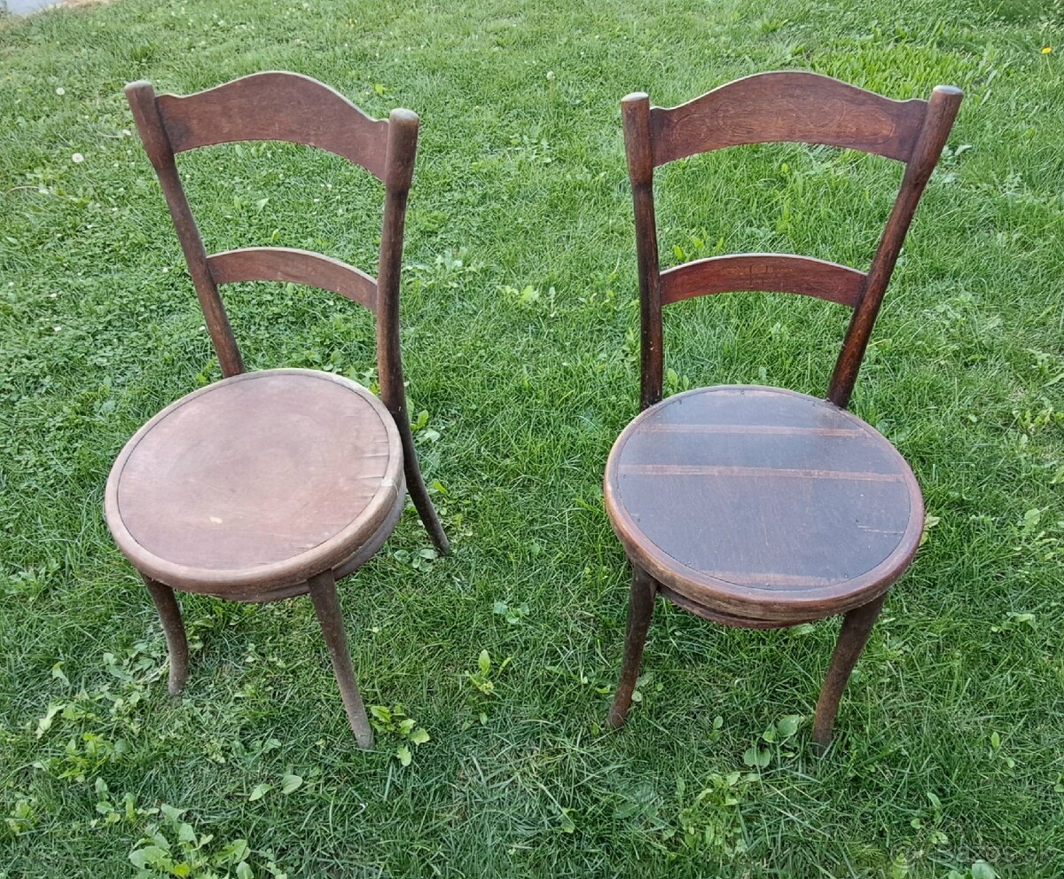 Predám 2ks staré stoličky Tonet + zadarmo ďalšie 2 stoličky (posledný obrázok). Cena je za všetko spolu. Osobný odber. Nálezový stav, potrebná renovácia.