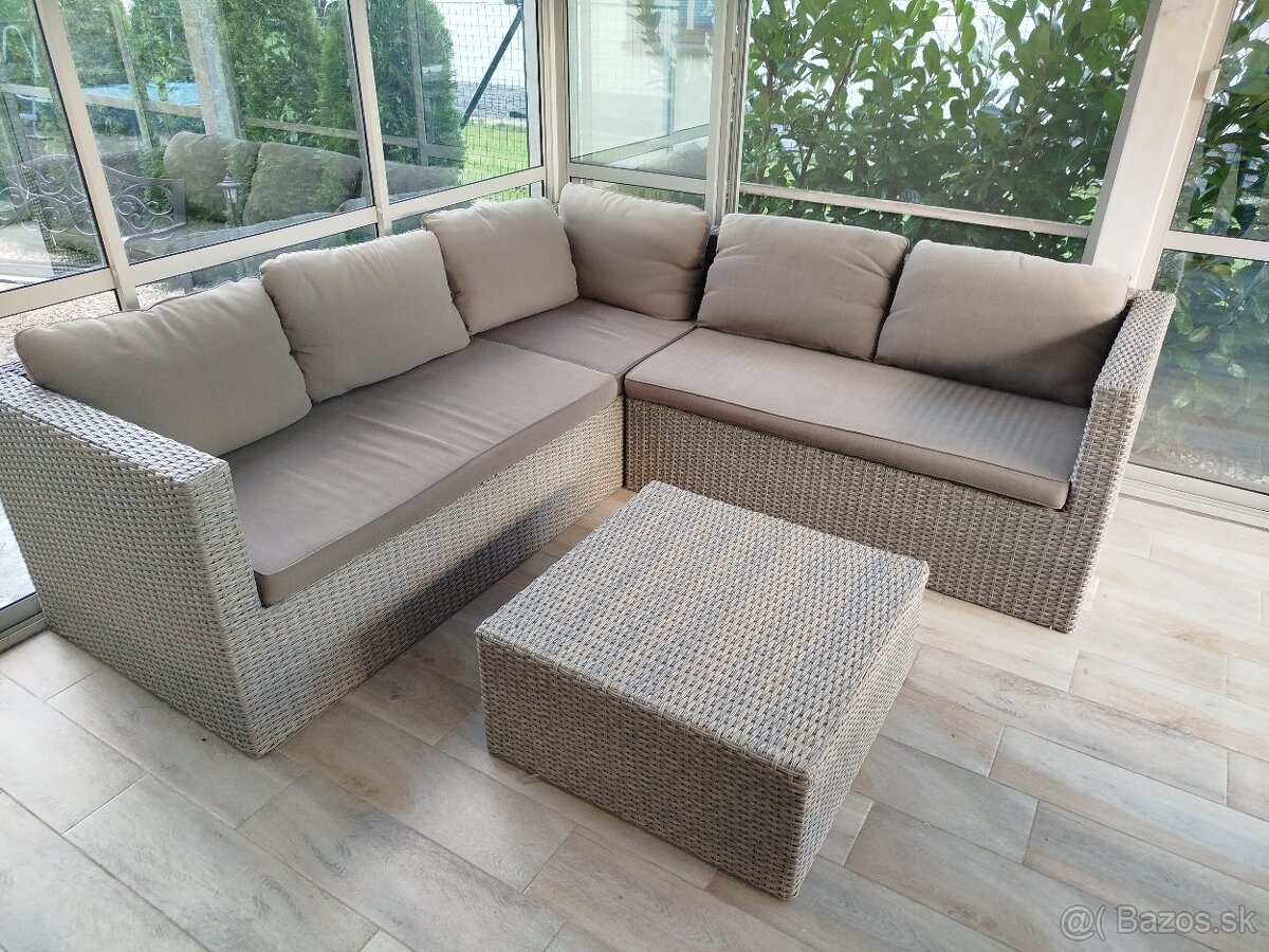 Predám ratanovú sedaciu súpravu v zachovalom stave 206x206 CM, výška 65 CM, hĺbka 77 CM, výška sedu 40 CM. Len osobný odber.