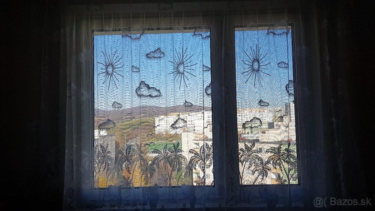 Detská vzorovaná záclona. Rozmer: celková šírka 400cm, na záclone je našitá riasiaca páska našitá riasia páska a po nariasení je šírka 262cm. Výška záclony je 176cm. Cena - 17 Eur. Kontakt: 0948/290 946