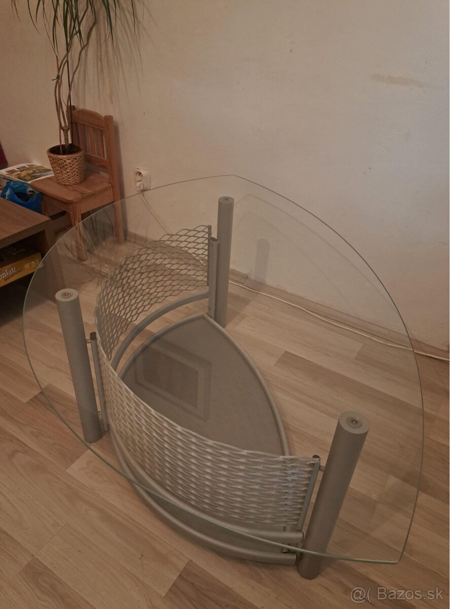 Sklený stolík s kovovým podložím, konferenčný stolík
