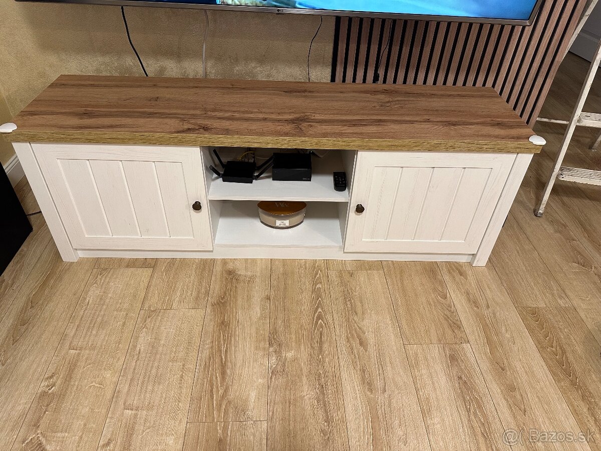 TV skrinka dub wotan - [16.12. 2025]predávame TV skrinku zaoblenú po bokoch, veľmi pekný stav bez poškodení, má 3 šuflíky a 2 otváracie skrinky, rozmery: šírka 150cm, výška 60cm a hĺbka 38cm