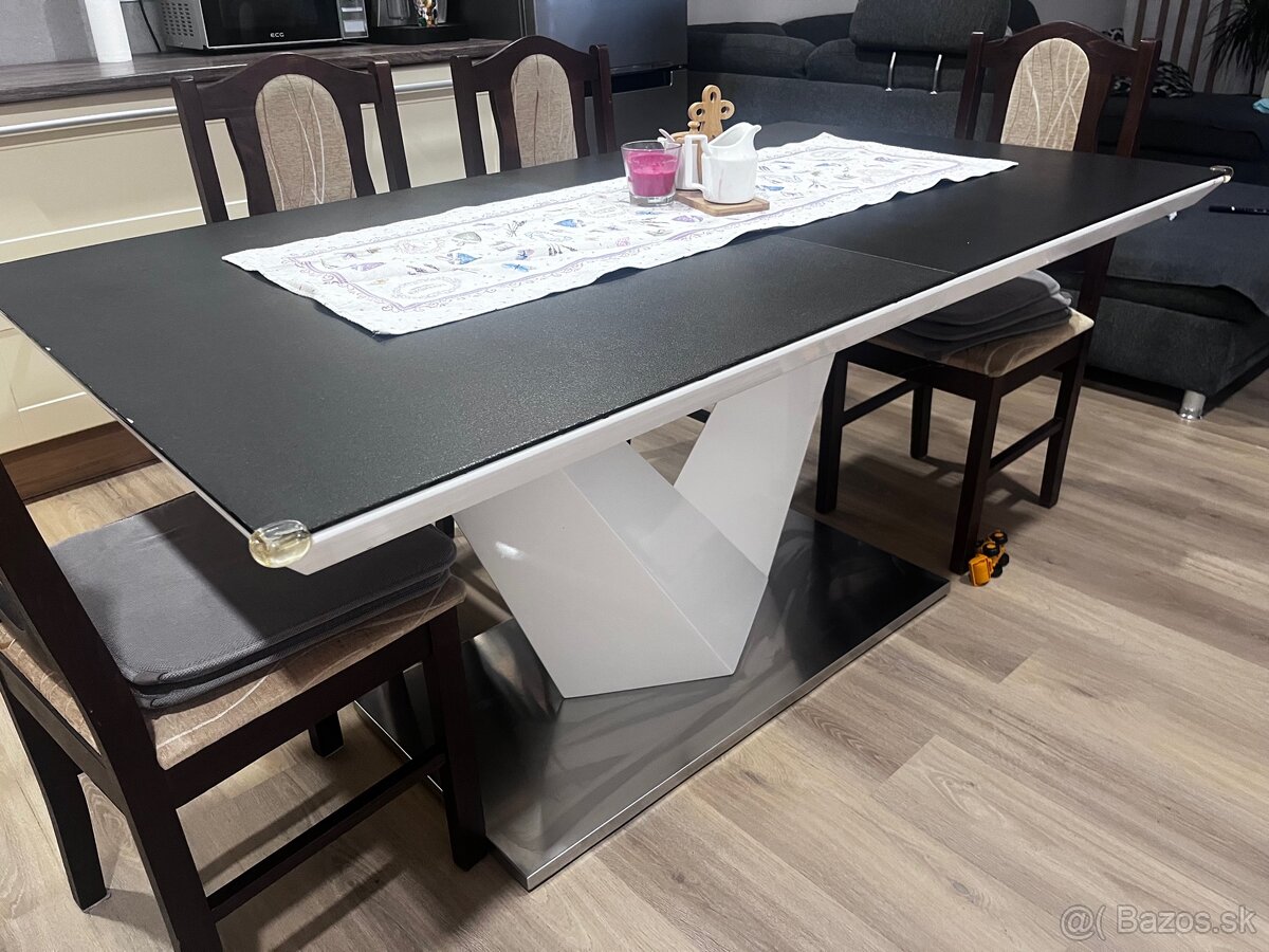 Kuchynsky stol a 4 stolicky - [29.11. 2025]Stôl je velmi zachovalom vstave, je rozkladaci v zlozenom stave ma dlhku 150 a v rozlozenom 220 cm vyska dtola je 74cm. Dohoda mozna