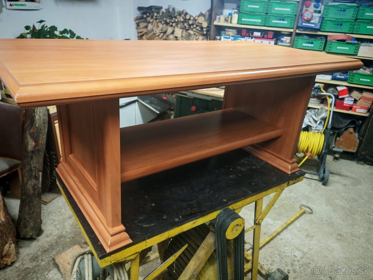 Predam konferencny stolik - drevotrieska o rozmeroch: 130cm x 65cm x 52cm. Bezne opotrebovanie nozicky od vysavaca. K stoliku je aj sklo.