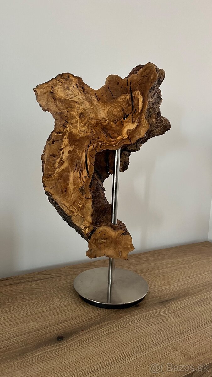 Dobry den ponukam na predaj volne stojacu dekoraciu z prirodneho masivneho dreva. Konkretne sa jedna o viac ako 100 rokov stary olivovnik ktory vynika svojou krasnou a jedinecnou kresbou dreva. Vyska vratane podstavca je 44cm jedna sa o rucne robenu dekoraciu, rovnaky kus nenajdete. Dekoracia je zaujimava z kazdej strany.