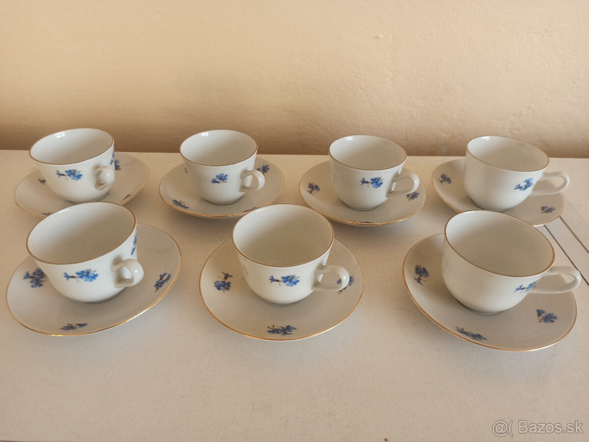 Predám set 7ks porcelánových šálok s tanierikmi, vo výbornom stave bez poškodení.