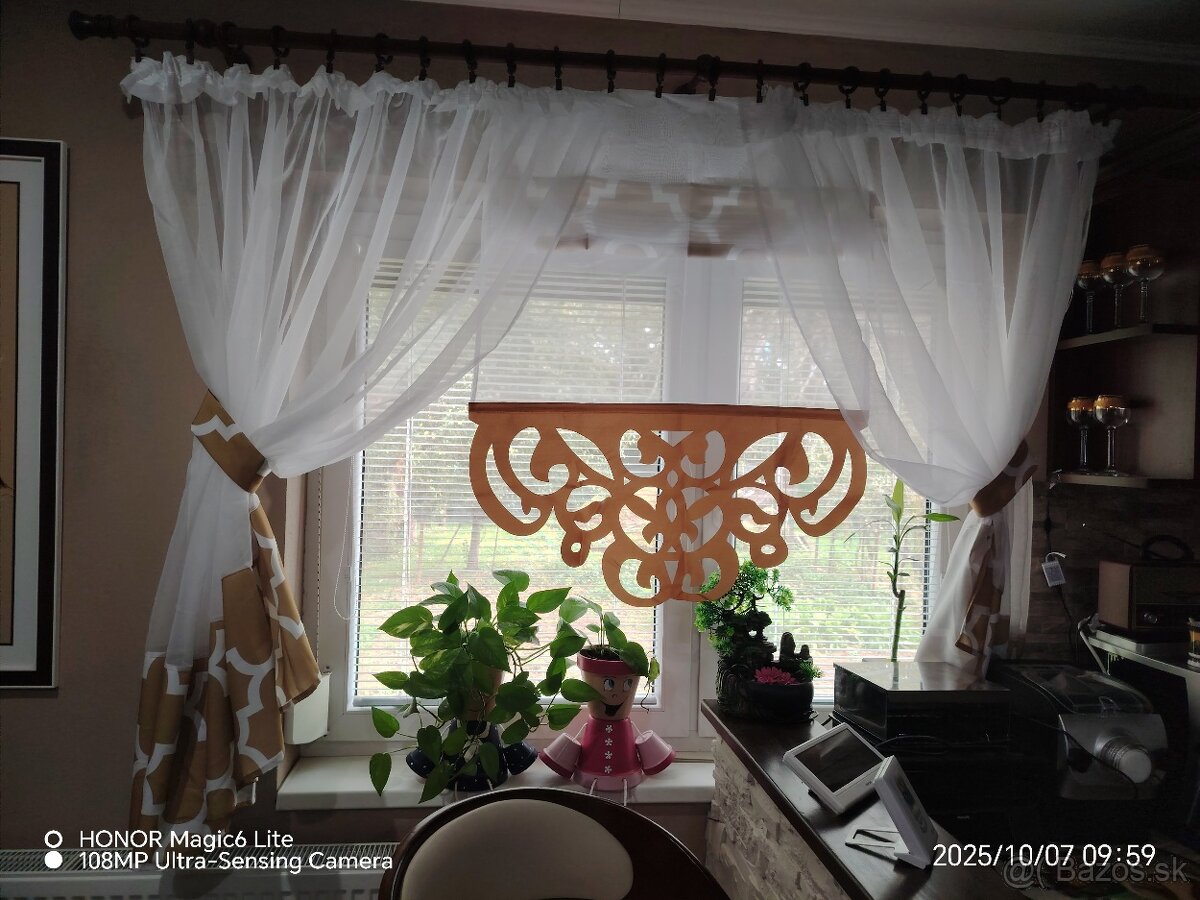 Záclona-2 kusy - [12.12. 2025]Záclony 2 kusy. Výška jednej záclony je 145 cm, šírka 155 cm. Drevenými krúžkami sa dajú rôzne stiahnuť. Cena 16 € za obidve. Na SMS nereagujem, treba volať alebo napísať e-mail.