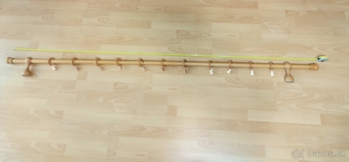 Predám bukovu garnižu dlžka 197cm používaná ale je vo výbornom stave.Cena je 12€ aj s kolieskami a štipcami.Osobny odber v Poprade. Na dobierku nezasielam. Volať do 20h.