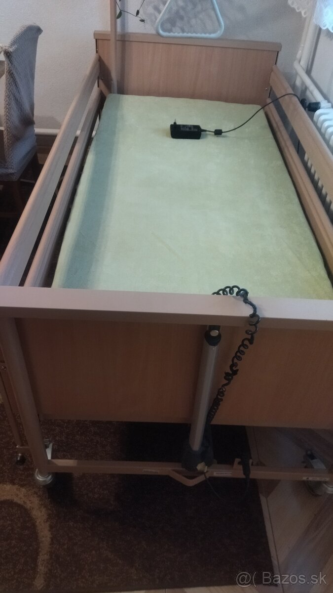 Polohovateľná elektrická posteľ - [30.11. 2025]Ponúkam luxusnú polohovateľnú posteľ od nemeckého výrobcu. Posteľ sa dá predlžiť o 10 až 20 cm. Nastavenie výšky roštu 25 až 80cm - TOP stav. Unesie 225kg. Bočné zábrany sa nastavujú do 3.polôh. Original LED- lampa na čítaníe. Zabrzdenie koliesok jedným pedálom. Súčasťou je hrazda a triangel.