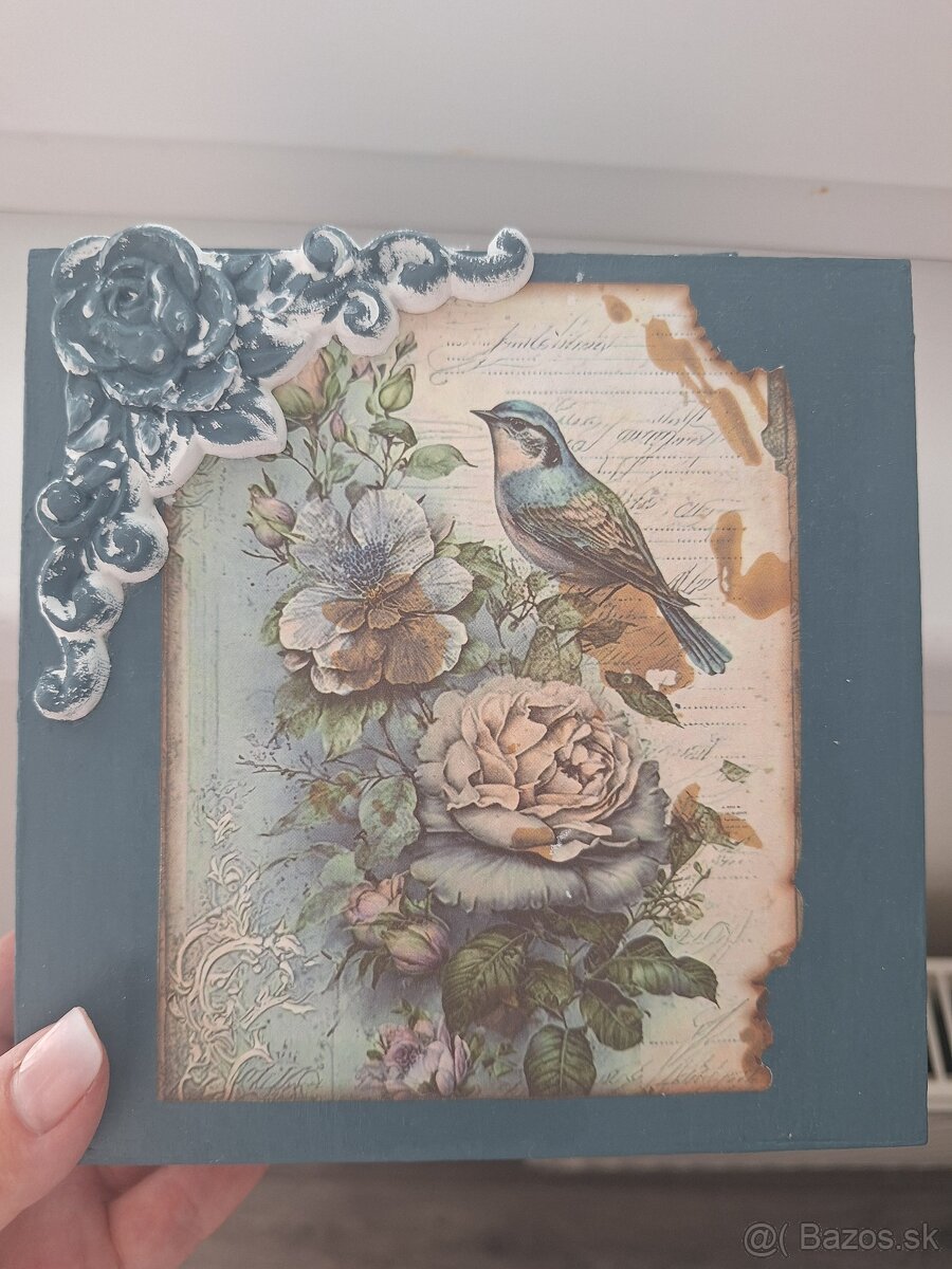 Predám drevenú škatuľku s dekoráciami, cena 15 eur