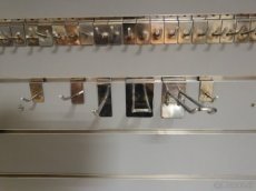 Predám háčiky, košíky a poličky do drážkových panelov. Háčiky mám v rôznych hrúbkach a dĺžkach. Jednoduché krátke 4 cm háčiky cena 0,5 eur/kus. Jednoduché 10 cm dlhé háčiky cena 1 eur/kus. Dvojité 10 cm dlhé háčiky 1,5 eur kus. Jednoduche 14 cm dlhe haciky 1,5 eur kus. Dvojité 16 cm dlhé háčiky 2 eur /kus. Polička z plexiskla dĺžka 60 cm, hĺbka 5 cm a výška 6 cm cena 5 eur kus. Drôtený košík do drážkového panelu dĺžka 65 cm, hĺbka 12 cm, výška 9 cm, cena 5 eur / kus. Biela kovová polica hĺbka 20 cm cena 10 eur / kus. Mám zo všetkého desiatky až stovky kusov