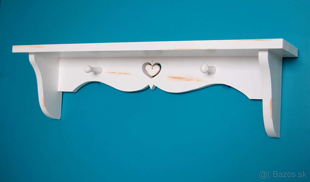Polica vyrobená z masívu v bielej farbe , polica je v zadnej časti osadená bajonetovým závesom takže ju môžete osadiť na akýkoľvek povrch .Rozmer pozmeníme farbu tak isto .Ručná práca