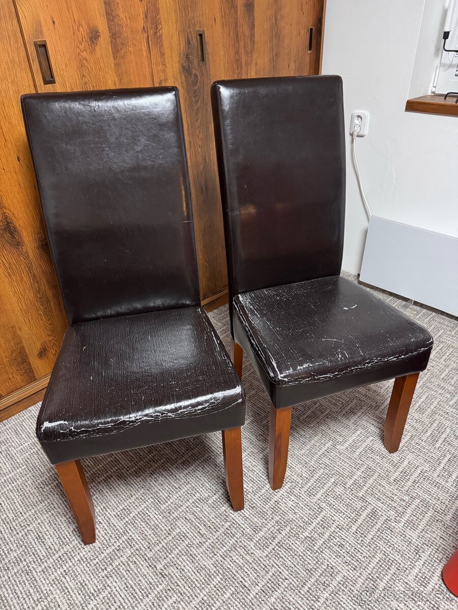 Ponúkam kožené stoličky. Sedacia časť je popukaná. K dispozícii viac kusov, napíšte na whats up. Len osobný odber. Cenenej za kus