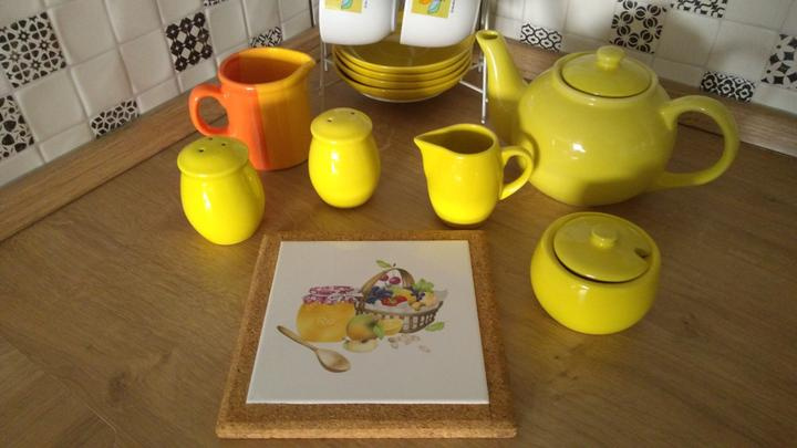 Šálky na stojane 7€, čajník 5€, ostatné kus 3€.