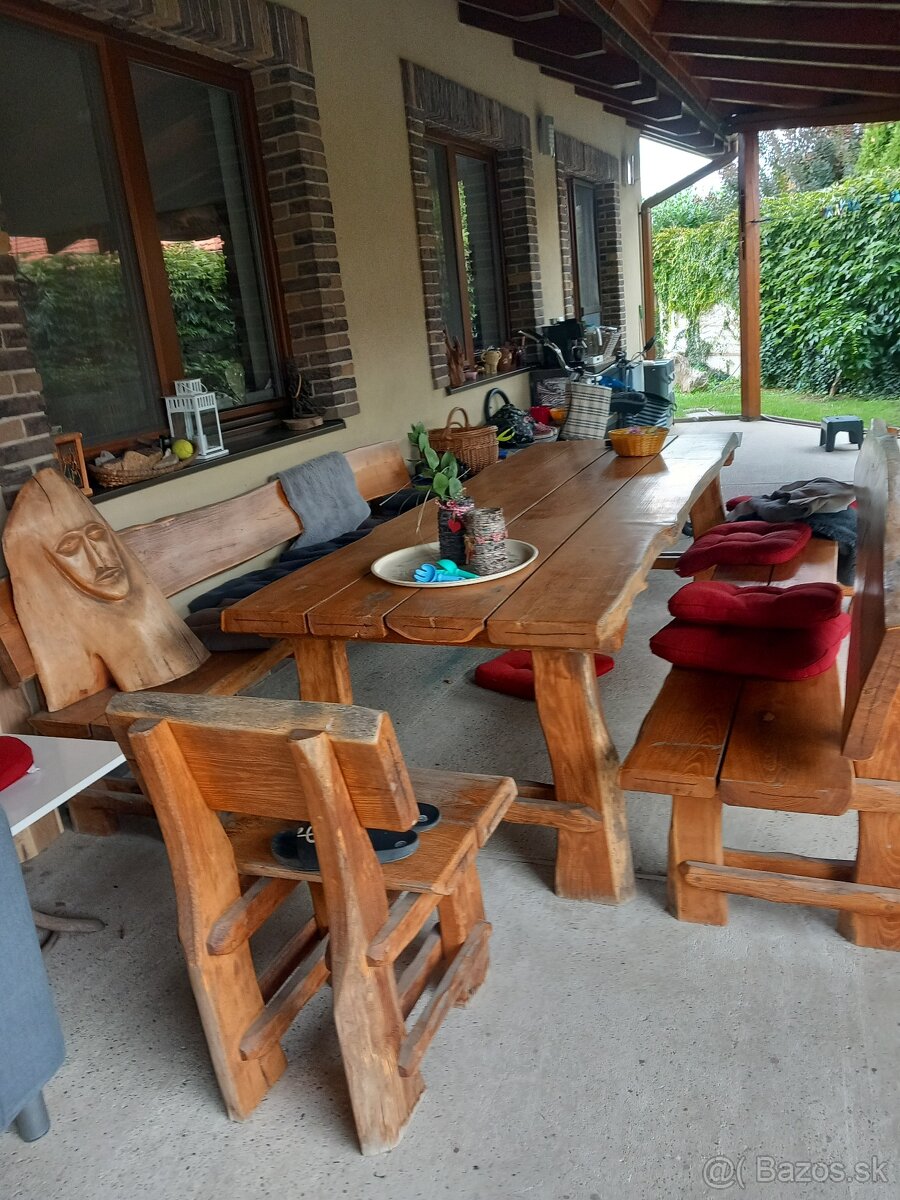 Predam terasovy komplet, stol 2,5mx80cm, 2 lavice 2,5m a 2 kreslá. Z materiálu agát hrúbka 5,5 cm.