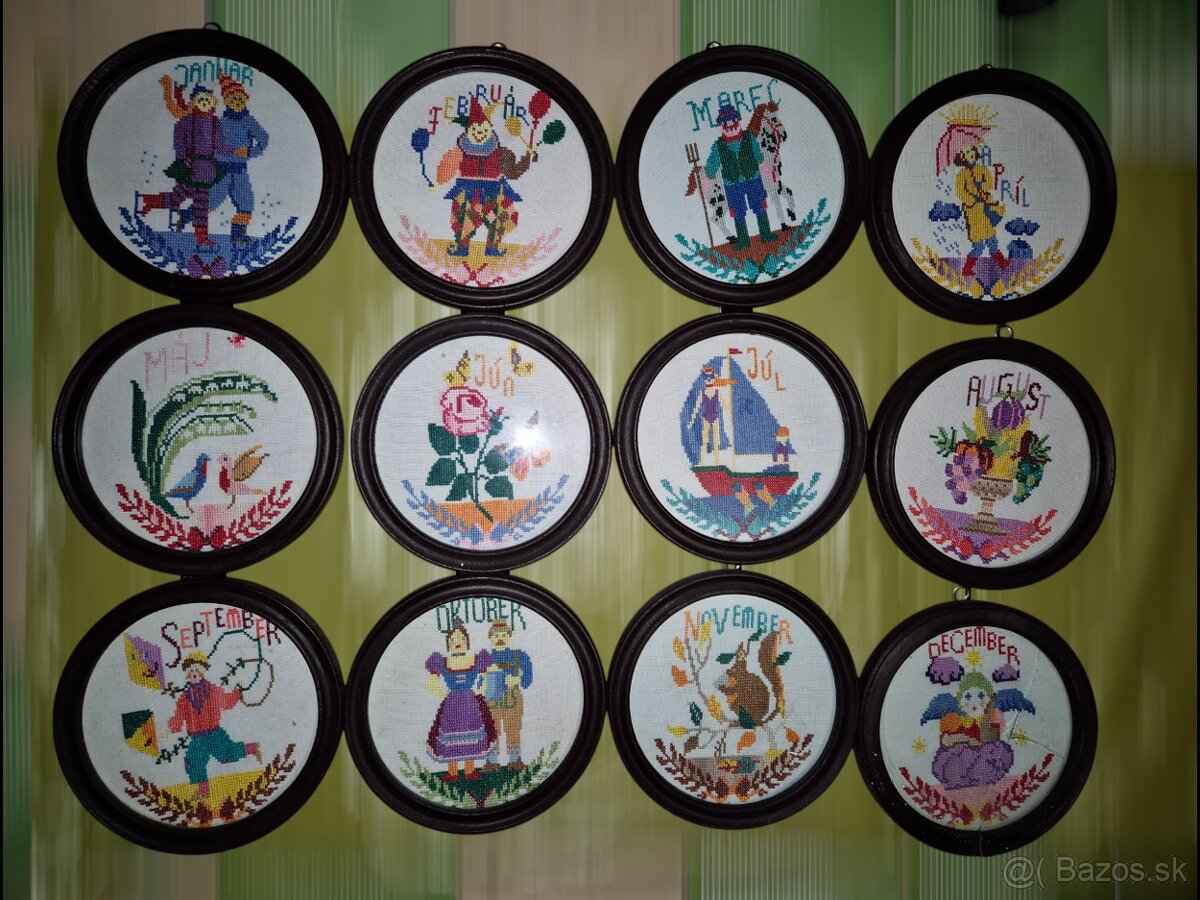Ponúkam na predaj tieto ručne vyšívané obrazy v zachovalom stave v množstve 12 kusov