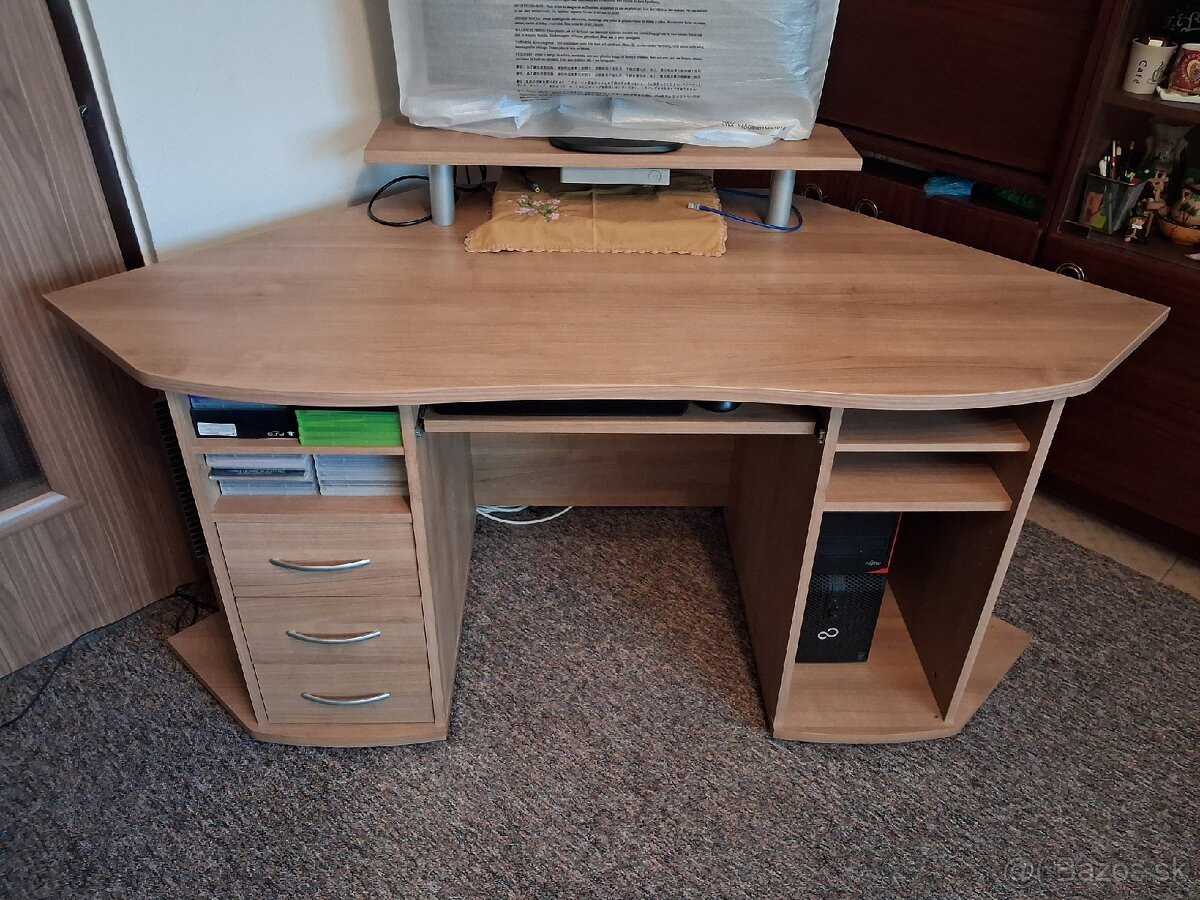 Prdám rohový písací stôl, málo používaný, ako nový, rozmery 165x94x73 cm, d/h/v