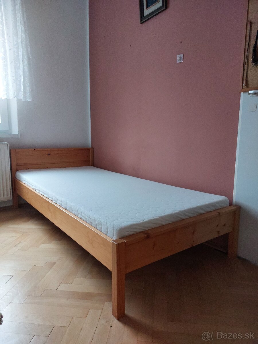 Predám pevnú drevenú posteľ 90x200 s latkovým pevným roštom za 30 € vo výbornom stave. Možnosť zobrať aj matrac za 20 €.