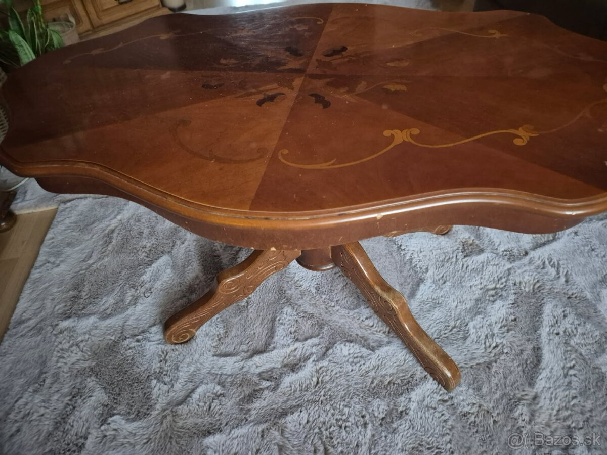 Konferenčný stolík s tvarovanou dyhovanou doskou
