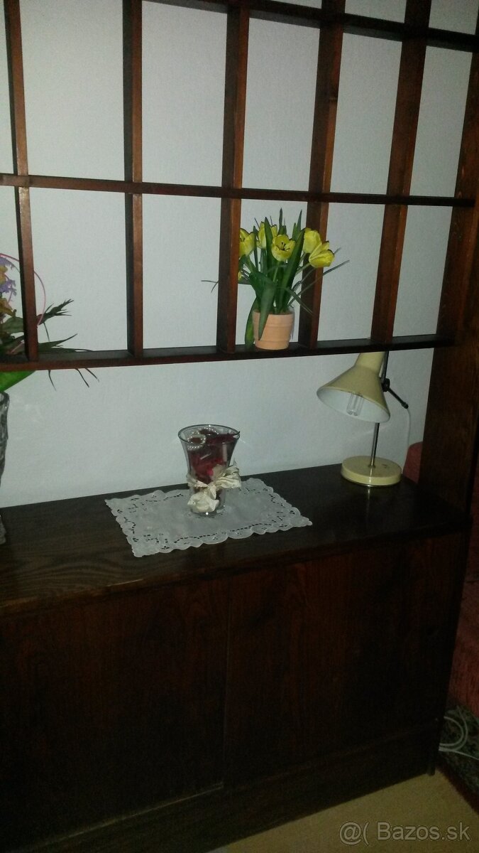skrinku z moreného dreva s nadstavbou na uloženie napr.kvetov a v spodnej časti klasická skrinka s obojstranným prístupom (uložny priestor-topánky a pod.)
