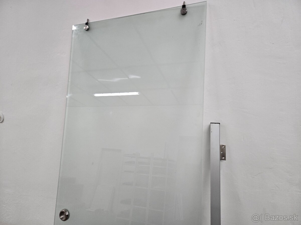 Ponúkam na predaj kúpeľnové dvere, sprchové posuvné dvere sklenené s mliečnym sklom. Sklo pohybuje po vodiacej lište vďaka pojazdom s ložiskami, takže ťažké a rozmerné sklo je možné ľahko ovládať. Hrúbka skla je 10 mm, tvrdené sklo.