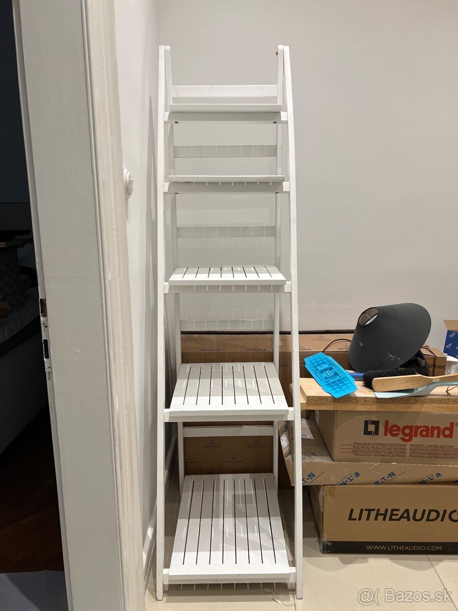 Biely drevený rebrík – dekorácia / stojan