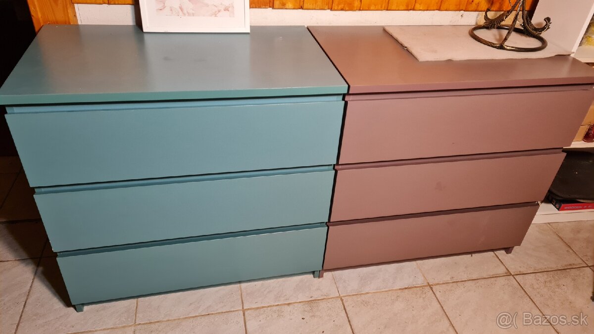 Predám 2x komoda D80,5xV77xH49cm 3x šuflik cena 50€/ks pastelové farby