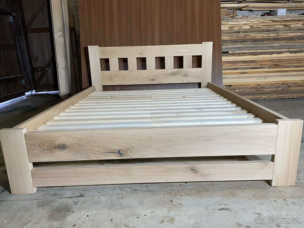 Masívna dubová posteľ Lucia + 2 stolíky zdarma - [19.11. 2025]Manželská masívna posteľ Lucia, masív dub, v hranatom aj oblom prevedení, vysoká nosnosť postele, povrchová úprava olej, 5. a 6. stredová noha, pripevnené stolíky zdarma.