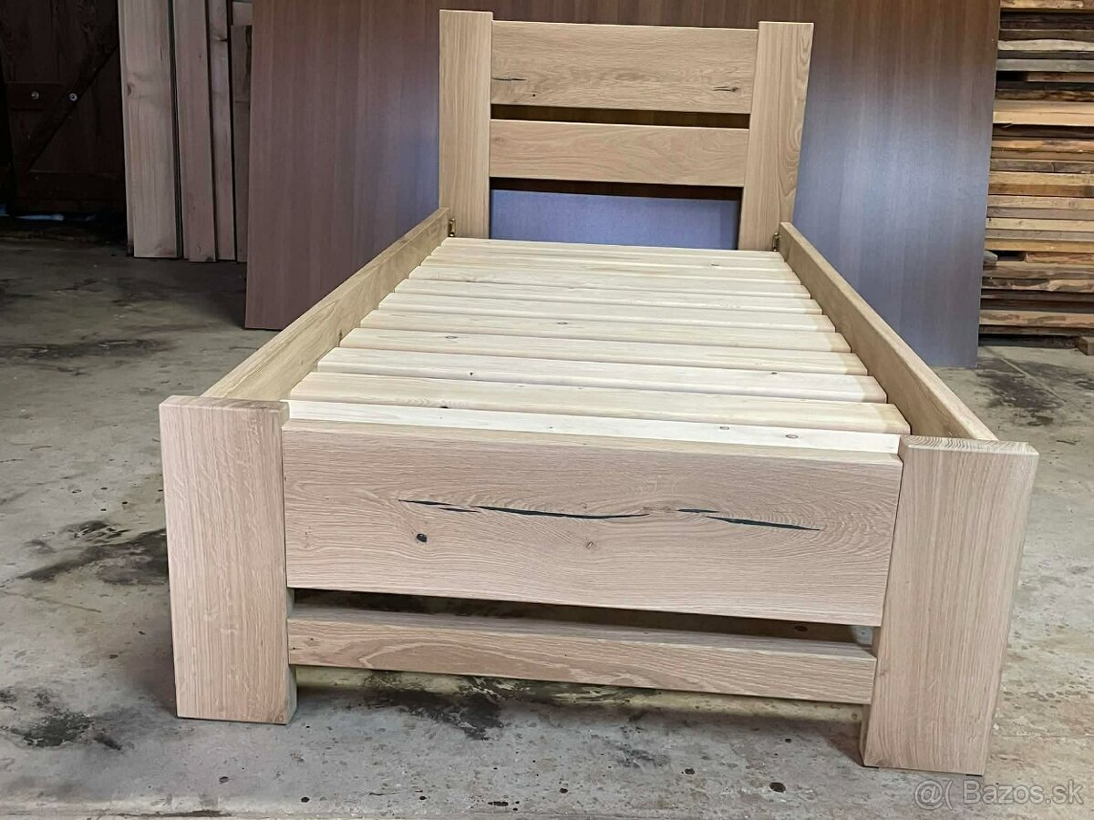Dubová posteľ bez čela Vilma - [24.12. 2025]Dubová masívna posteľ Vilma, plný masív dub, hranaté aj oblé prevedenie, vysoká nosnosť 2x200kg, piata a šiesta stredová noha, povrchová úprava olej.