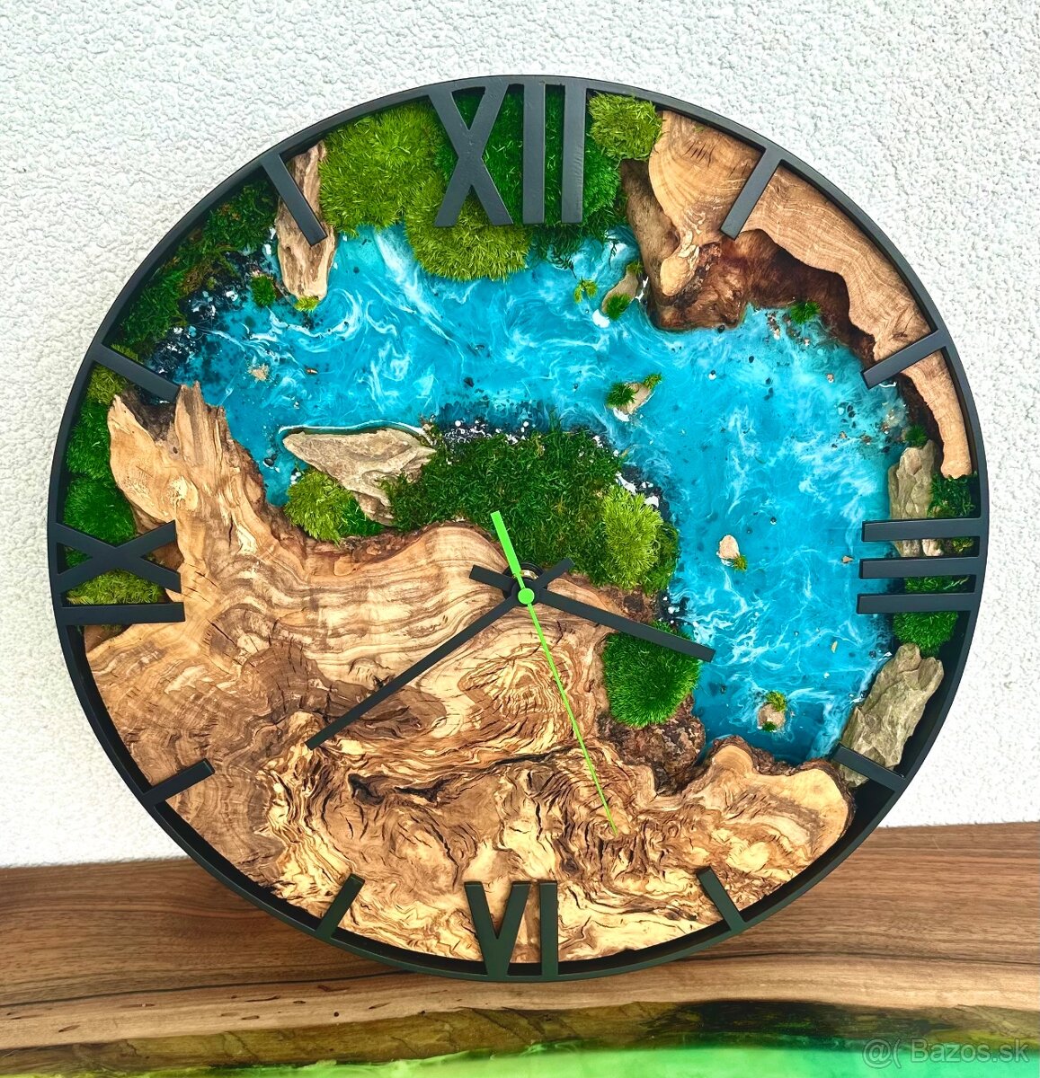 Machové hodiny s epoxidom a drevom 40cm epoxidové ho