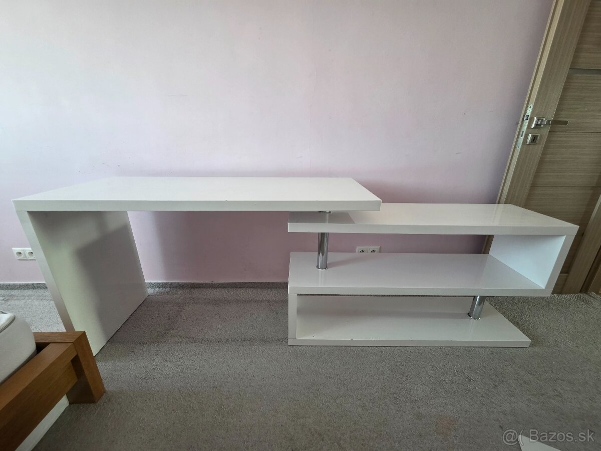 Predám rohový stôl obojstranný v dekore biela vysoký lesk. Stôl má známky opotrebovania.