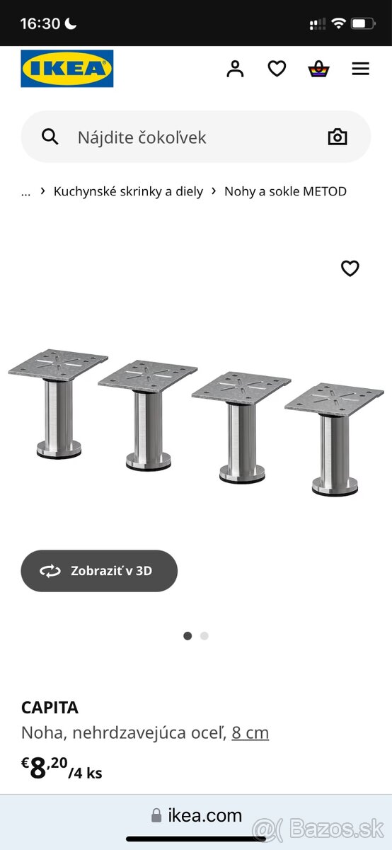 Predam 10 x nerezove nabytkove nohy /ako nove- bez poskodenia/ z IKEI /Capita/ a 6 x plastove /plastove /Metod/ su uplne nove - len rozbalene/