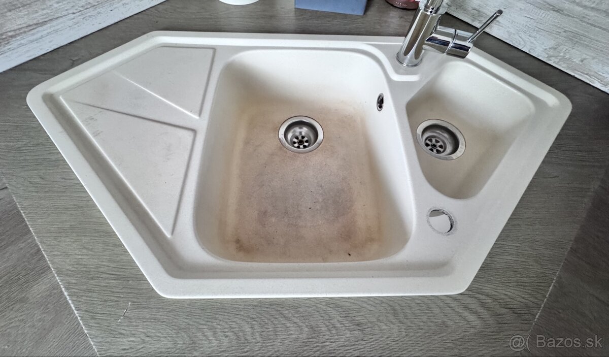 Predám rohový granitovy drez. Farba krémová. Stav použitý. Rozmery š 97 x h 50 cm. Bez príslušenstva a batérie. Len osobný odber.