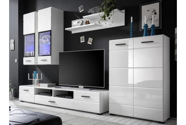 Nová zabalená obývacia stena biela vysoký lesk šírka 290 cm s osvetlením za 300 eur. L0