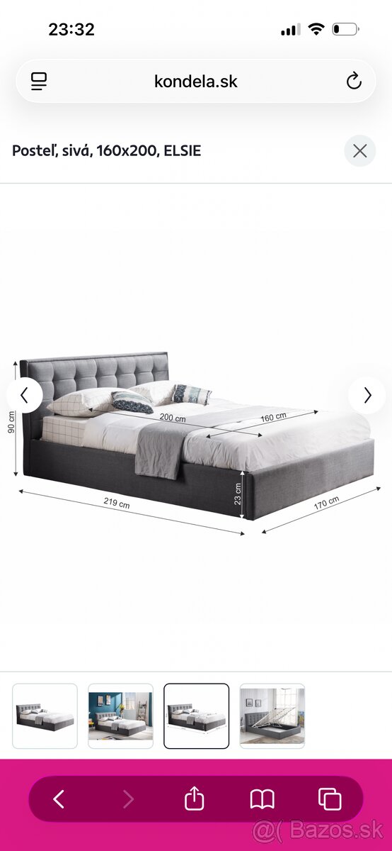 Posteľ 90x200 s matracom a úložným priestorom - [10.12. 2025]Predám modernú posteľ v sivej farbe, rozmery 90×200 cm, s kvalitným pohodlným matracom a praktickým úložným priestorom pod lôžkom. Posteľ je vo veľmi dobrom stave, krátko používaná, pevná a stabilná, ideálna do detskej či študentskej izby.