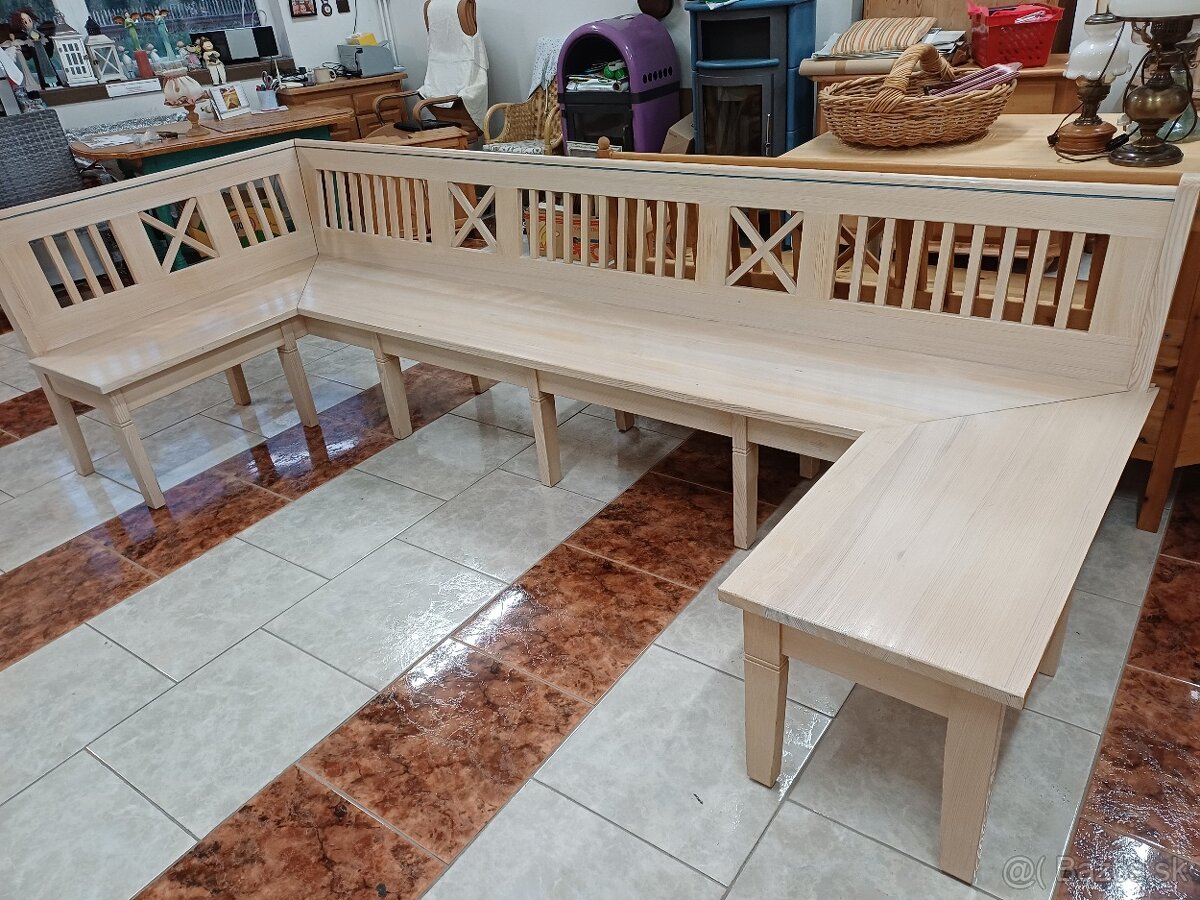 Jedálenská rohová lavica so stoličkami a stolom z masívu - [19.12. 2025]Predám veľmi zachovalý jedálenský set z masívu- rohová lavica s dvoma uložnými priestormi, 2 stoličky a stôl. Dôvod predaja- zmena dispozície kuchyne a potrebujeme väčší stôl.